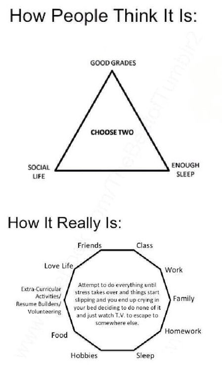 So what causes senioritis? In a word, EVERYTHING. We are caught in a hormonal limbo between adulthood and childhood. We are expected to go out and get jobs, apply for college, plan for a future, and yet also told to enjoy our teenage years as children before we have to enter the “real world” post-graduation. Is it any wonder that we are stressed? We are caught between two worlds: we look at the kids at our schools and wonder if we ever could have been that small, while at the same time we have no idea how to handle the world that we are about to be plunged into.