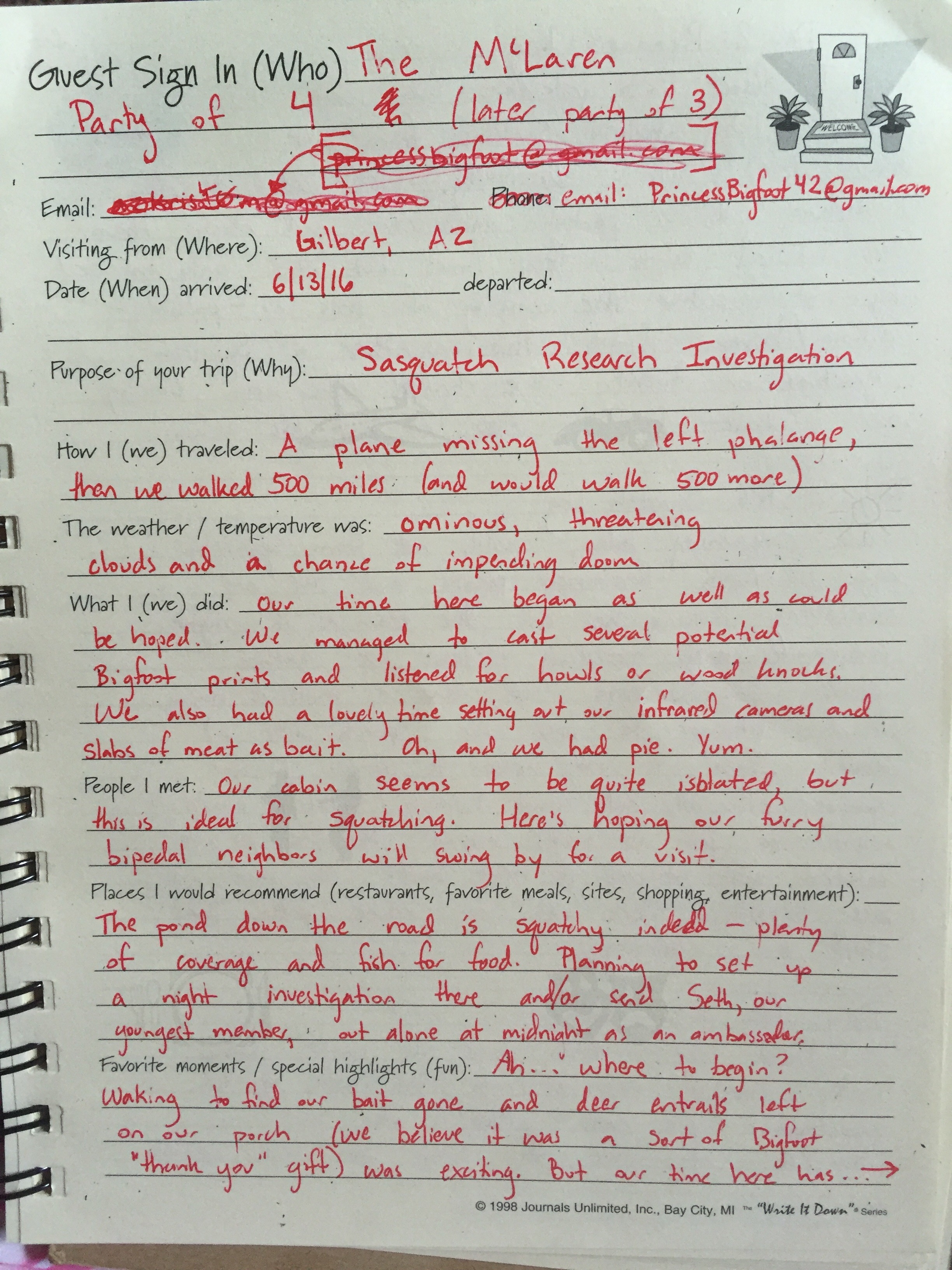 Hopefully the owners don’t mind that I took up so many pages in their book… But if they are annoyed, they can email me at PrincessBigfoot42@gmail.com, which is indeed a real email. 😎