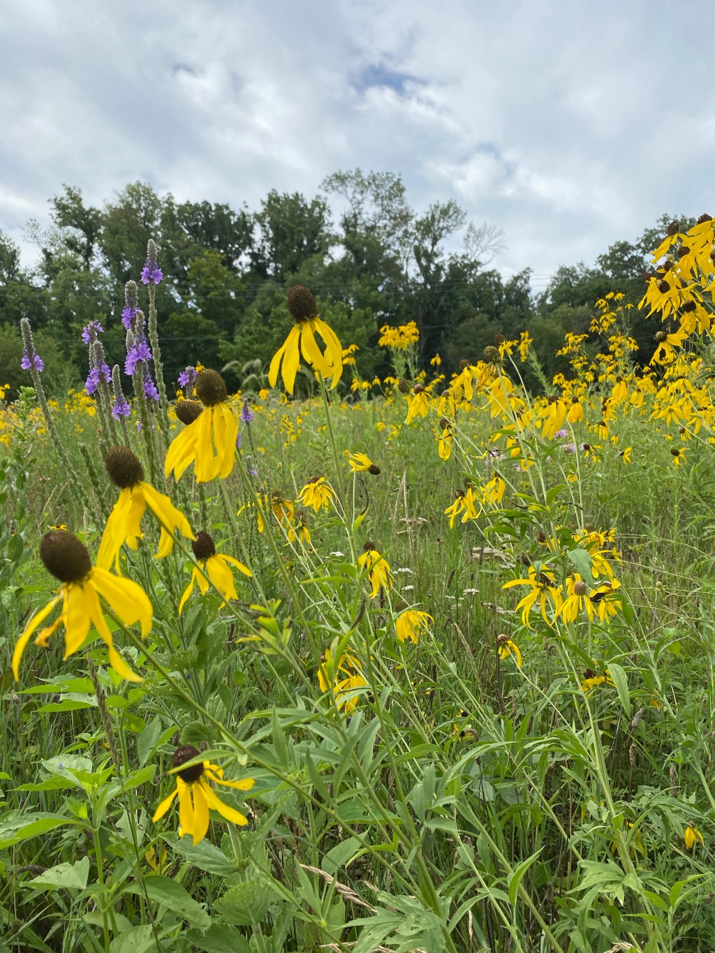 2. To enjoy a prairie restoration area with its sunburst of yellow flowers.