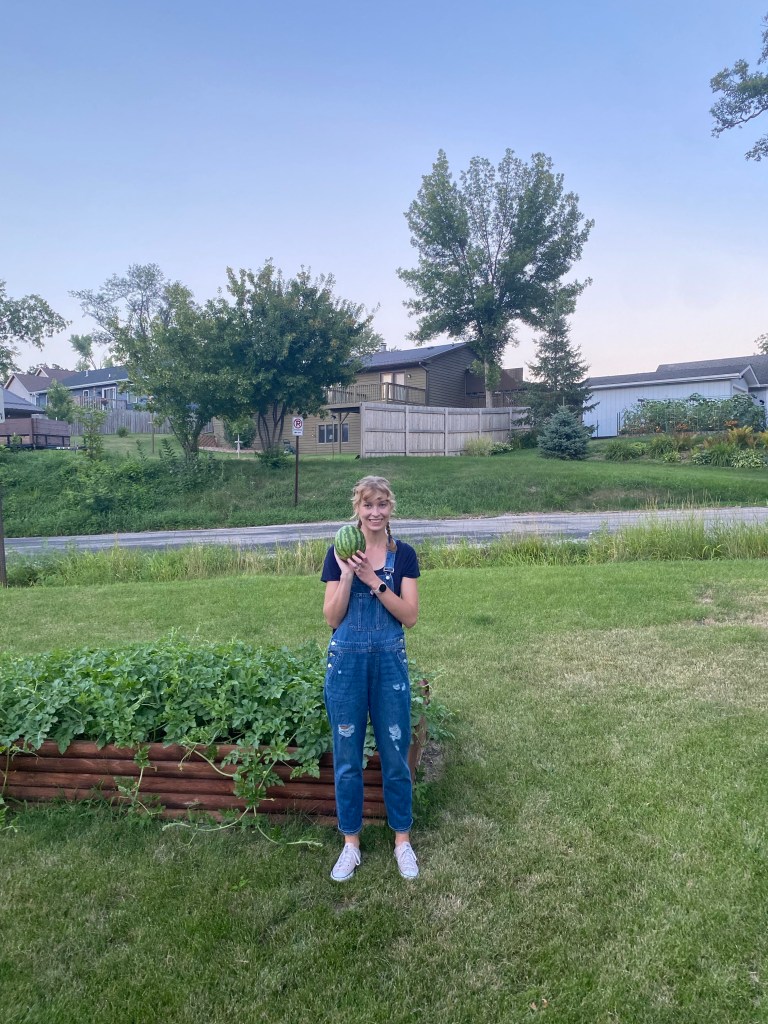 I picked this watermelon before it’s time but gardening continues to be good.