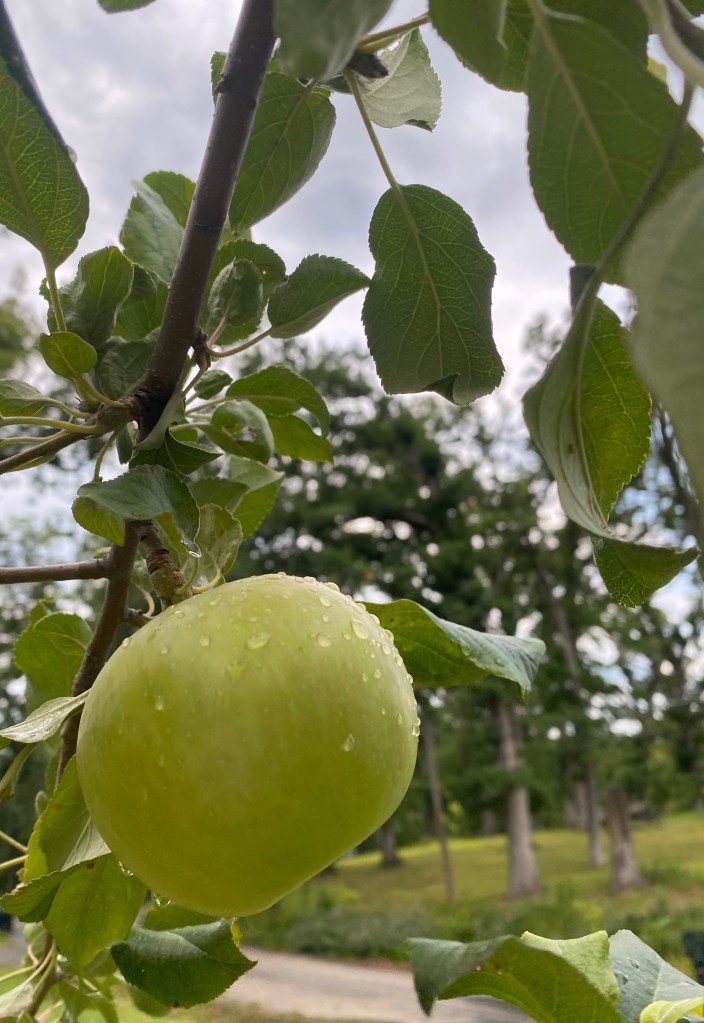 3. Something Beautiful: It stormed this morning and I enjoyed checking on my garden during a clear hour. Our little apple tree is bearing fruit for the first time and it’s so lovely. Its infant harvest of five little apples will be enjoyed soon.